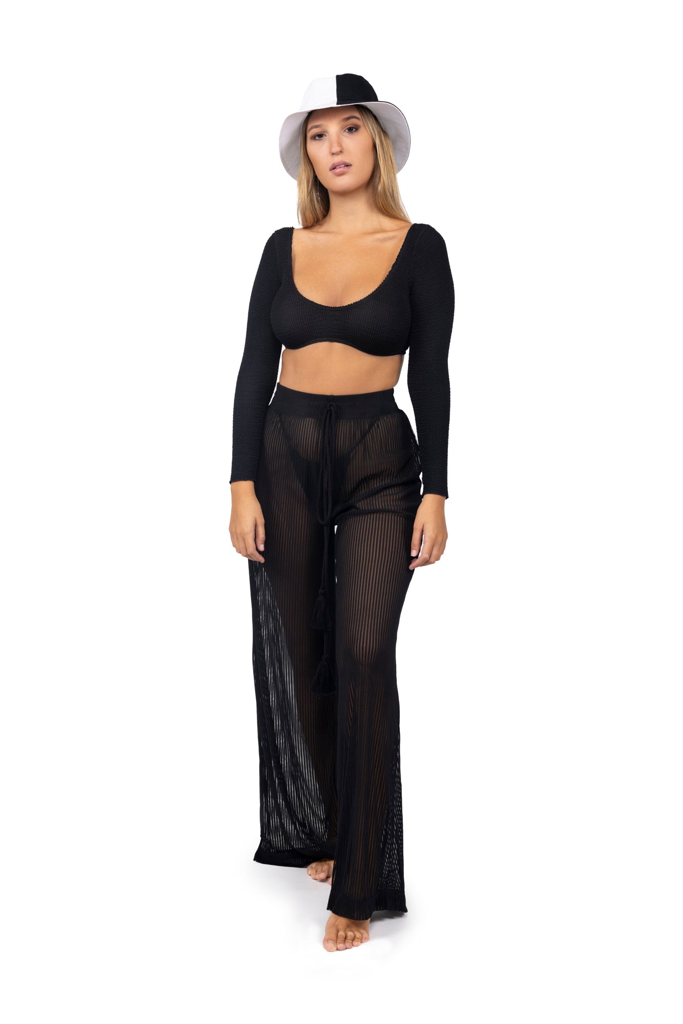 Complete your beach outfit with these chic and comfortable black lace lace pants from Lulun. These pants are made of the same nylon and elastane blend as the matching top, ensuring a smooth and flattering fit. The lace design adds some texture and flair, while the elastic waistband and side pockets provide convenience and functionality. These pants are versatile and easy to wear, whether you want to lounge by the pool, stroll along the shore, or hit the town. Grab yours now and enjoy the summer in style!